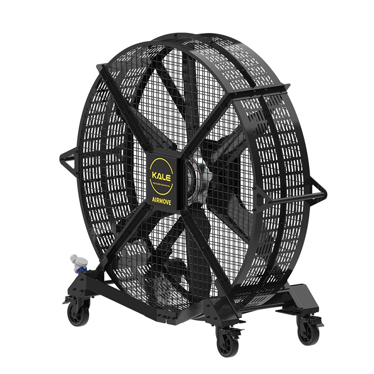 AIRMOVE is a portable fan with a 2-meter diameter and a PMSM motor, delivering impressive air distribution of over 20 meters. Its four-wheel design ensures easy mobility, while its low power consumption of just 0.4 kW and quiet operation at only 43 dB enhance user comfort. With an IP55 waterproof rating, AIRMOVE is suitable for use even on rainy days. It features easy cleaning and a VFD stepless speed regulation function for adaptable airflow. Constructed from high-strength materials, AIRMOVE guarantees safety and durability, boasting a service life of up to 15 years.
